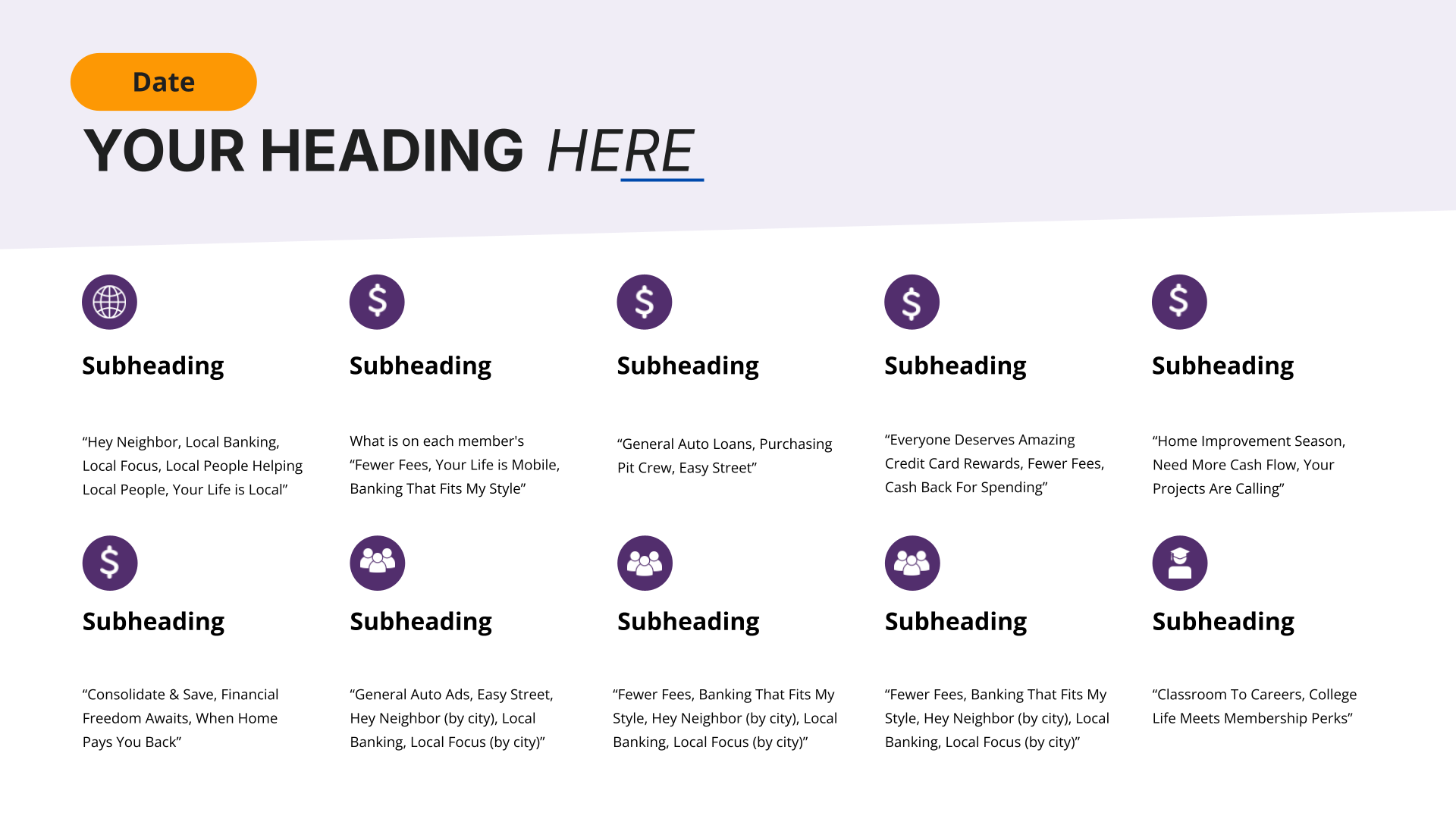 I redesigned a 40-slide presentation to align with Affinity Plus’s brand guidelines. My focus was on creating consistency in layout and typography, strengthening visual hierarchy, and translating complex information into clear, engaging slides.